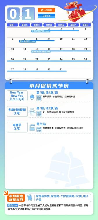旺季概覽 大促時間表 黑五網(wǎng)一活動:2024年11月21日至12月2日 活動持續(xù)時間:12天,創(chuàng)歷屆…